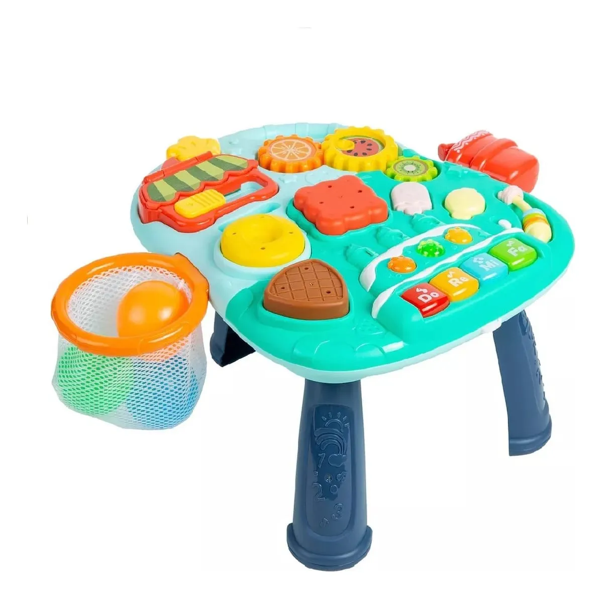 Además, su panel frontal incluye botones musicales, engranajes giratorios y figuras didácticas. Por lo tanto, estimula la coordinación mano-ojo y el desarrollo sensorial.