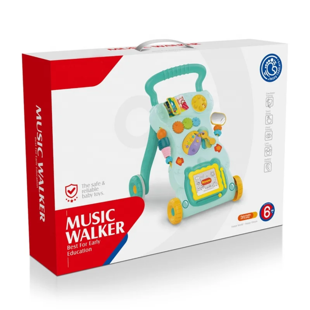 Fabricada en plástico ABS no tóxico y de alta resistencia, esta andadera didáctica con música garantiza durabilidad. Sus bordes son redondeados para mayor seguridad. Además, el mango ergonómico facilita el agarre.