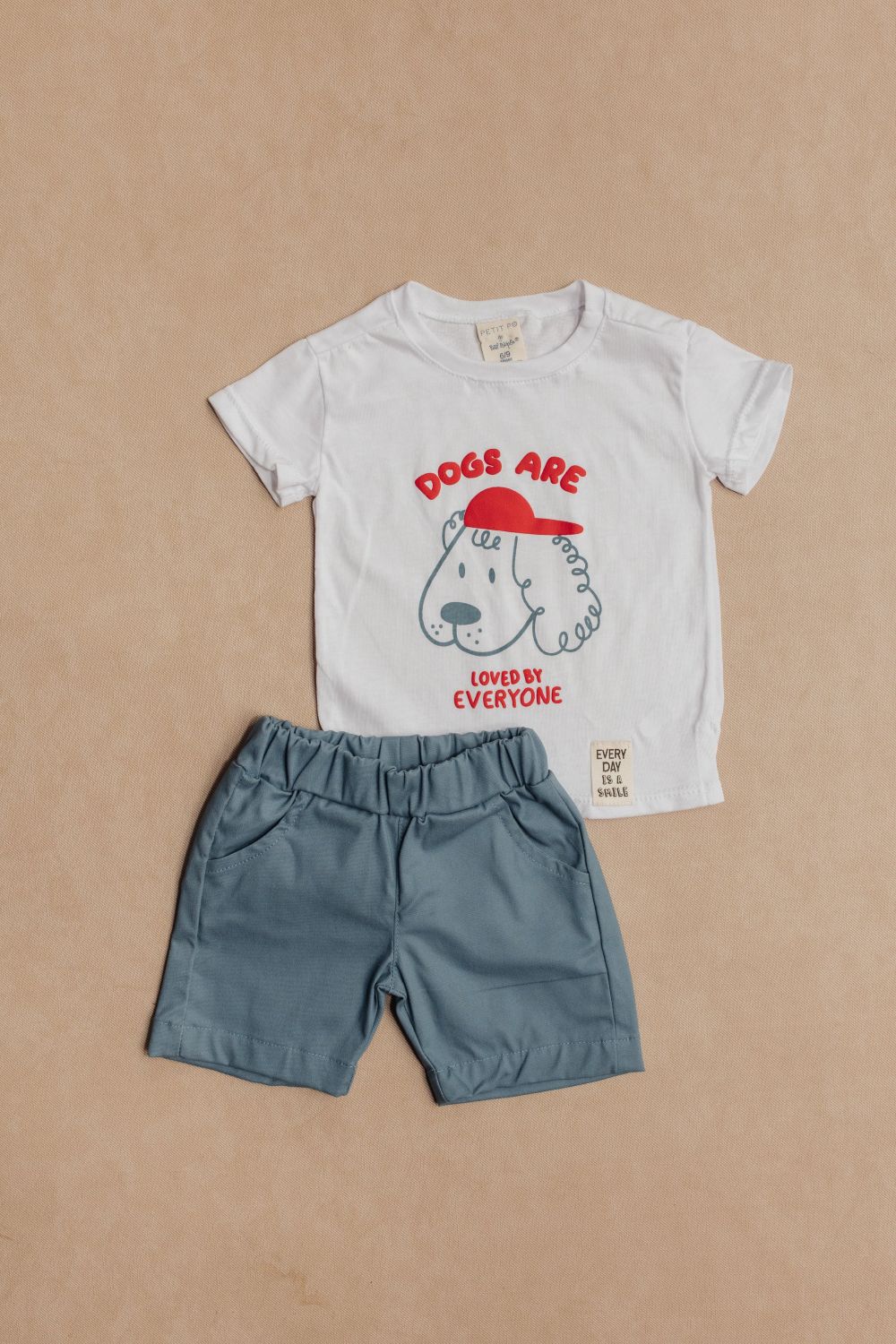 Camiseta en tejido de punto con estampado en frente de colores divertidos, Bermuda en plano tiene pretina enresortada para mejor ajuste. tiene bolsillos delanteros.