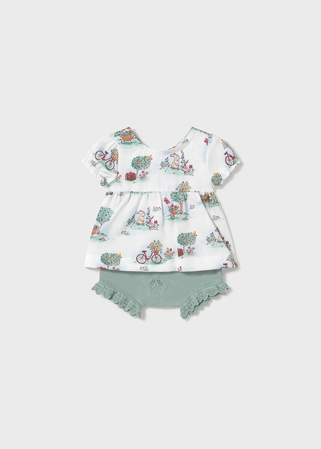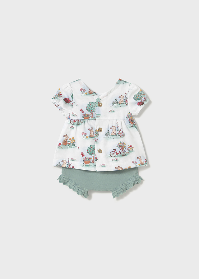 Camiseta de manga corta. Cierre con botones en la espalda para facilitar la puesta de la prenda. Diseño estampado.